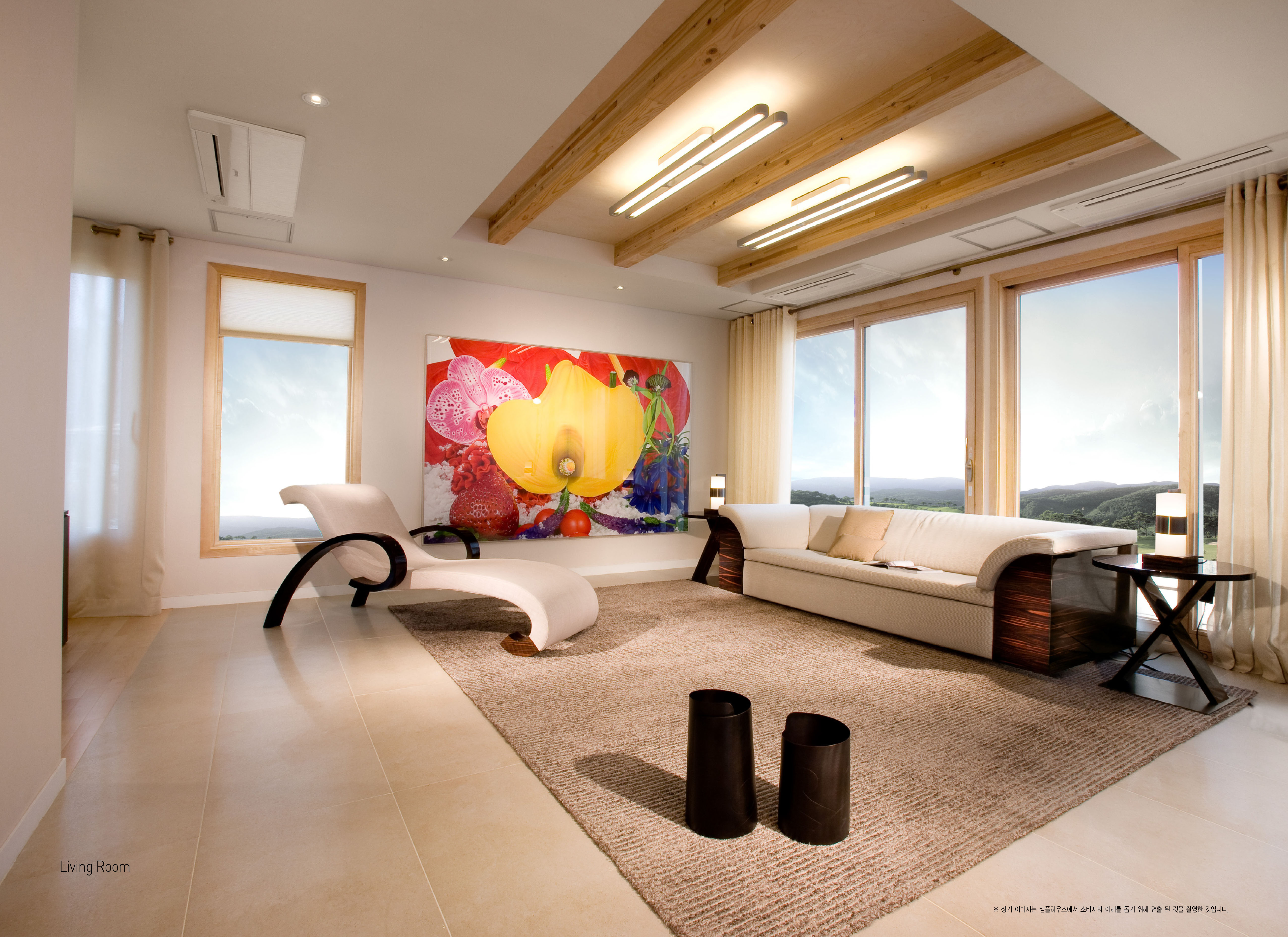 - 수직적 공간감: 거실 천장고를 6.2m까지 높이는 파격적인 설계를 통해 기존 타운하우스에서는 경험할 수 없었던 웅장함과 개방감을 선사했다.