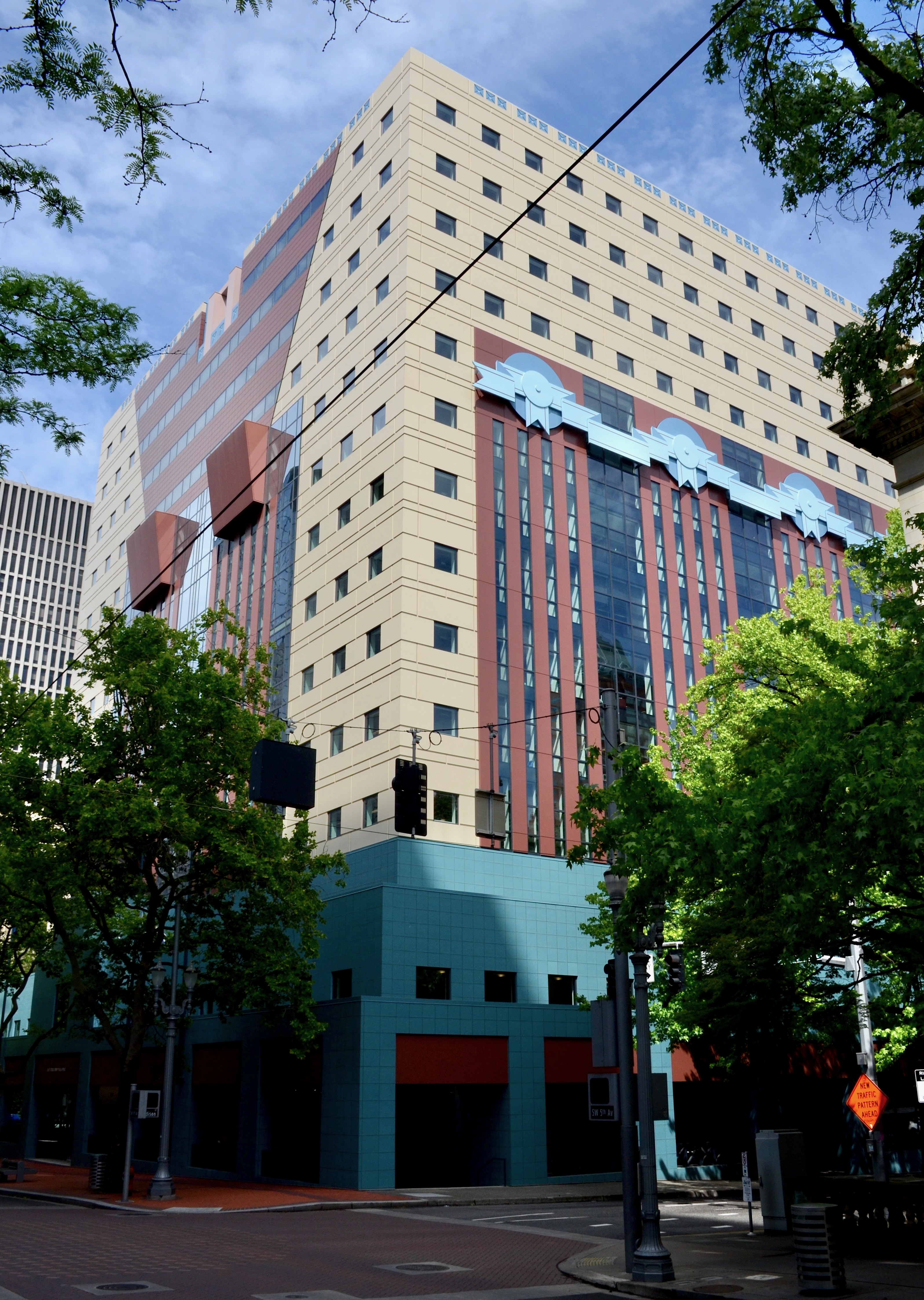 포틀랜드 빌딩은 미국 포스트모더니즘 건축의 탄생을 알린 선언문과 같은 건물이다. 이 건물은 당시 주류였던 모더니즘의 유리와 강철로 된 무미건조한 마천루에 대한 정면 도전이었다. 그레이브스는 고전주의 건축의 삼단 구성(기단부, 몸체, 상부)을 차용하고, 대담하고 상징적인 색채(땅을 상징하는 청록색 타일, 하늘을 상징하는 하늘색 외벽)를 도입했으며, 과장된 크기의 고전적 모티프(필라스터, 쐐기돌)를 건물 파사드에 적용했다. 건물 정면 상단에 설치된 거대한 구리 여신상 '포틀랜디아(Portlandia)'는 이러한 서사적, 상징적 접근의 화룡점정이었다.